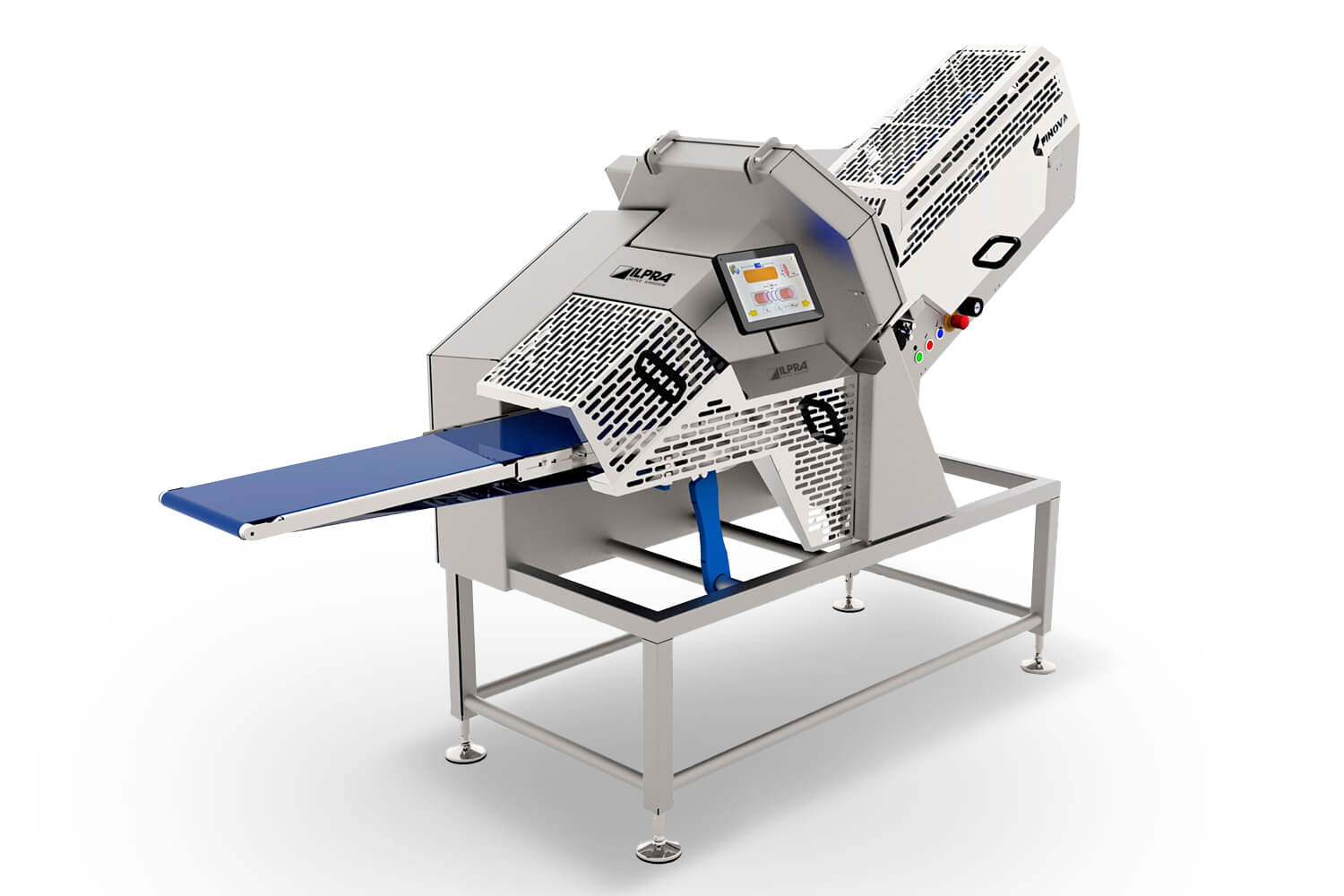 Automatic industrial slicer with optional integrated weighing for target-weight portions. SliceFil-320 delivers up to 300 cuts per minute with orbital circular blade.