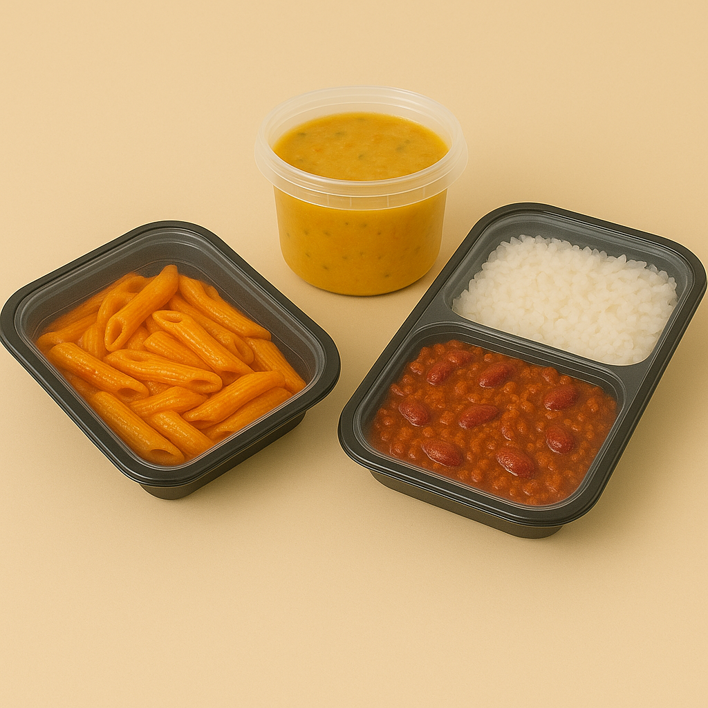 We supply machines which package chilled, frozen and ambient meals including pasta dishes, curries, stir fries, salads, noodle bowls, roast dinners and multi-compartment combinations. Systems are configured to handle sauces, high-moisture foods and delicate toppings without damage during sealing.